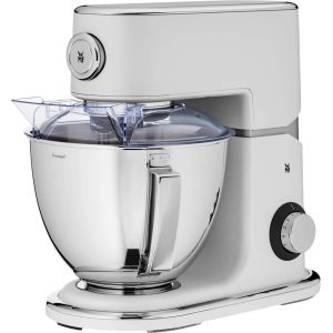 در مقابل، همزن برقی کاسه دار برای کسانی طراحی شده که یا زیاد شیرینیپزی میکنند، یا حجم خمیر و موادشان زیاد است. در این مدلها، دستگاه روی پایه قرار میگیرد، کاسه زیر پرهها ثابت میشود و معمولاً همزن قابلیت چرخش کاسه یا حرکت دورانی دارد. این یعنی لازم نیست دائم همزن را در دست بگیری؛ دستهایت آزادتر است و میتوانی همزمان کار دیگری انجام دهی.