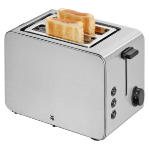- WMF Stelio Toaster: توستر دو اسلات با توان 1050 وات و بدنه استیل ضدزنگ، مجهز به ۷ درجه تنظیم برشتگی، قابلیت یخزدایی، گرمکن مجدد و سینی خردهگیر قابل جداسازی. طراحی ساده و کیفیت بالای ساخت در Stelio، آن را برای بسیاری از خانوادهها مناسب کرده است. این مدل نیز امتیاز ۴.۵ از ۵ را از کاربران کسب کرده است.