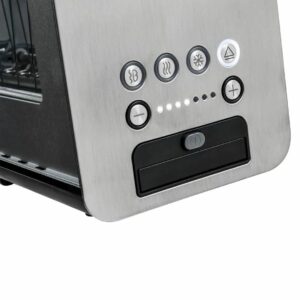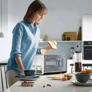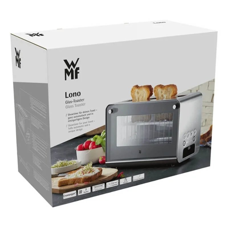 توستر دبلیو ام اف WMF Lono Glass Toaster با تمام شدن برنامه برشته به طور خودکار به سمت بالا حرکت می کند . با شیشه کار شده در بدنه نمای جذابی از فرآیند برشته کردن را ارائه می دهد . صفحات شیشه ای داخلی را می توان به سادگی برای تمیز کردن جدا کرد . 7 سطح مختلف برشته شدن با سطوح برشته متغیر از قهوه ای روشن تا قهوه ای تیره ، بسته به سلیقه شخصی شما . ساخته شده از فولاد ضد زنگ با کیفیت بالا . با توستر شیشه ای WMF Lono ، جلوه بسیار خاصی بر میز صبحانه حاکم است . به سادگی تکه نان را وارد کنید ، دکمه را فشار دهید ، بنشینید و استراحت کنید . نان به طور خودکار در توستر پایین میرود و سپس دوباره بالا میآید و به لطف عملکرد داخلی نان در مرکز قرار میگیرد تا از نتایج یکنواخت قهوهای شدن اطمینان حاصل شود . و همه اینها درست در مقابل چشمان شما ، زیرا پنجره شیشه ای قابل جابجایی نمای جذابی از کل فرآیند را ارائه می دهد .