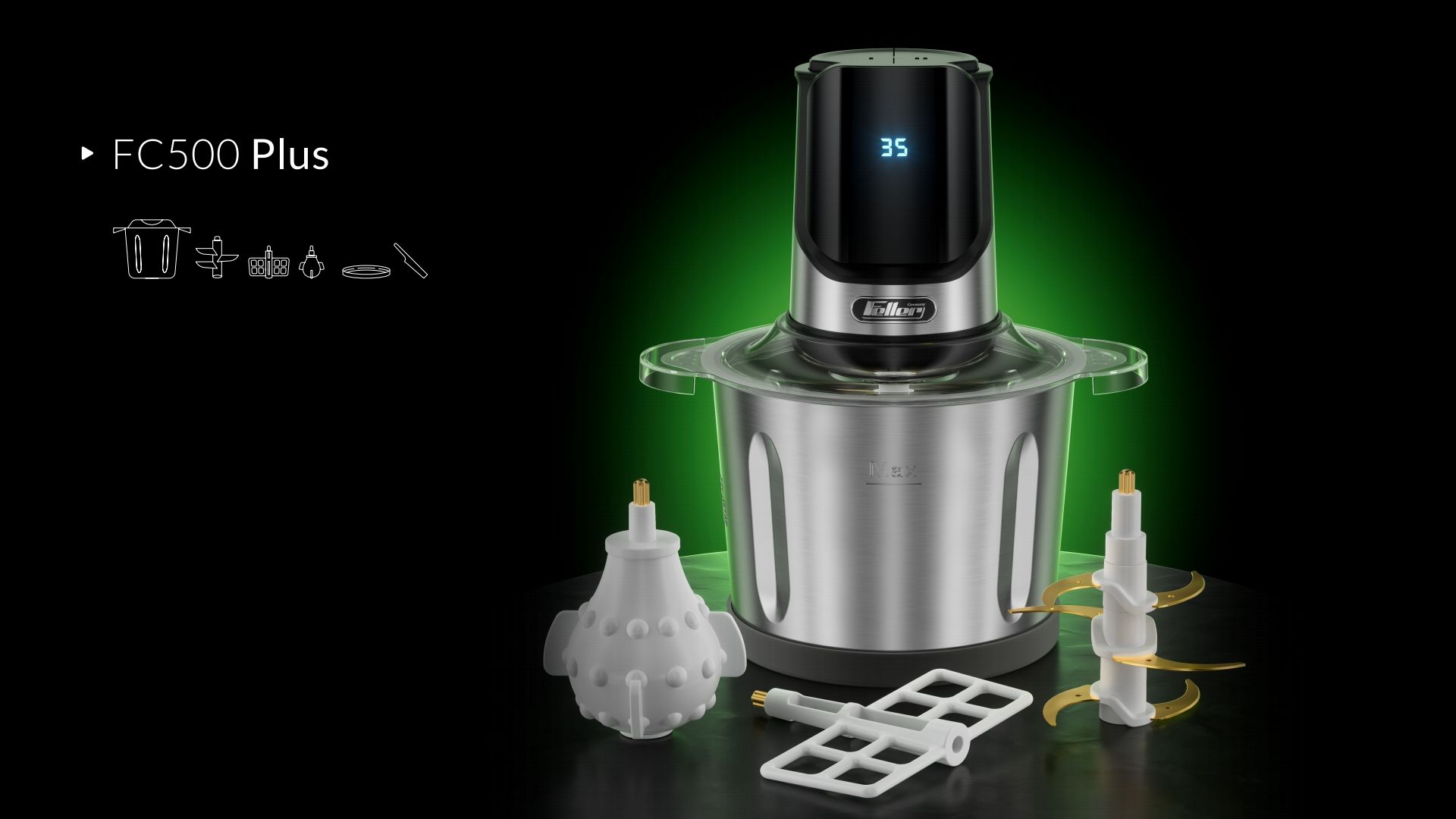 خرد کن فلر مدل FC500-PLUSیک دستگاه قدرتمند و کاربردی برای آمادهسازی سریع انواع مواد غذایی در آشپزخانههای خانگی است.
