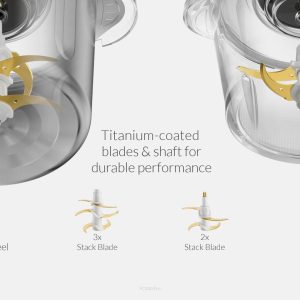 وجود دو کاسه مجزا شامل کاسه فلزی و کاسه شیشهای، انعطافپذیری بیشتری برای کاربر ایجاد میکند. کاسه فلزی برای مواد سختتر و کاسه شیشهای برای مشاهده فرایند خرد شدن مواد، کاربردی و هوشمندانه طراحی شدهاند. برای افزایش ایمنی، سیستم خاموشی خودکار و محافظت در برابر گرمای بیش از حد در نظر گرفته شده است که از آسیب رسیدن به موتور جلوگیری میکند.