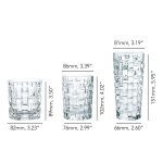 ، این سرویس شامل 6 عدد لیوان کوتاه با ارتفاع 10 سانتی متر با وزن 426 گرم و 6 عدد لیوان بلند با ارتفاع 15 سانتی متر با وزن 526 گرم و 6 عدد لیوان متوسط با ارتفاع 8 سانتی متر با وزن 339 گرم می باشد و عرض همگی آن ها 8 سانتی متر است .