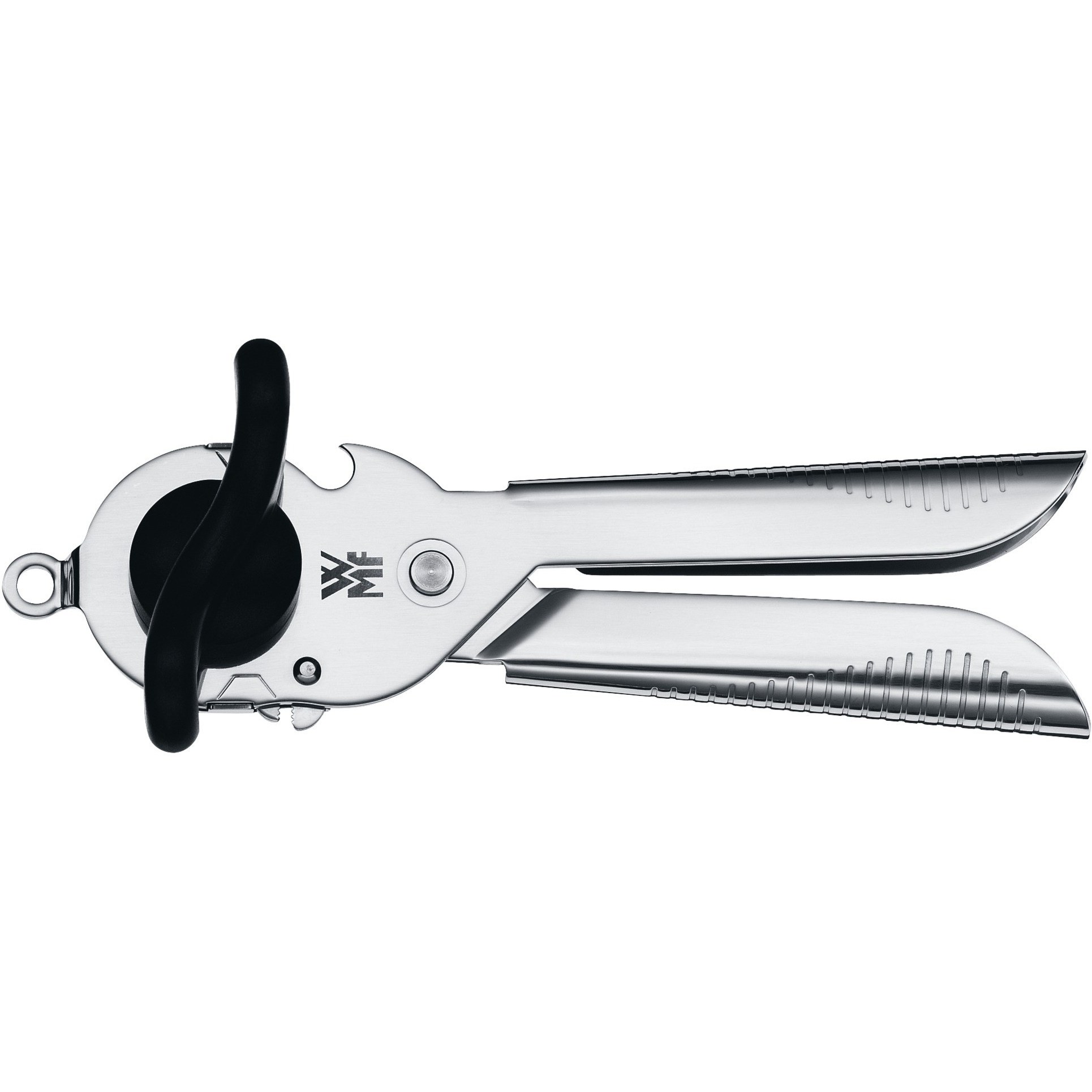 کنسرو باز کن دبلیو ام اف مدل WMF Tin opener Tin Up از استیل و فولاد کرومارگان ساخته شده که موجب مقاومت بالا و زیبایی آن می شود . کنسرو بازکن قوطی و بازکن بطری در یک وسیله است . دارای انبر برای گرفتن درب و حلقه انتهای دسته برای آویزان کردن .