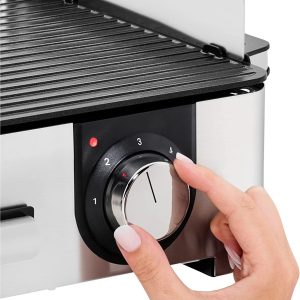 قدرت بالای این دستگاه باعث میشود صفحات چدنی در کمترین زمان ممکن داغ شده و حرارت را به طور یکنواخت توزیع کنند. با ۵ حالت تنظیم دما، شما کنترل کاملی بر روی بافت غذا (از پخت ملایم تا گریل کردن سریع و ترد) خواهید داشت.