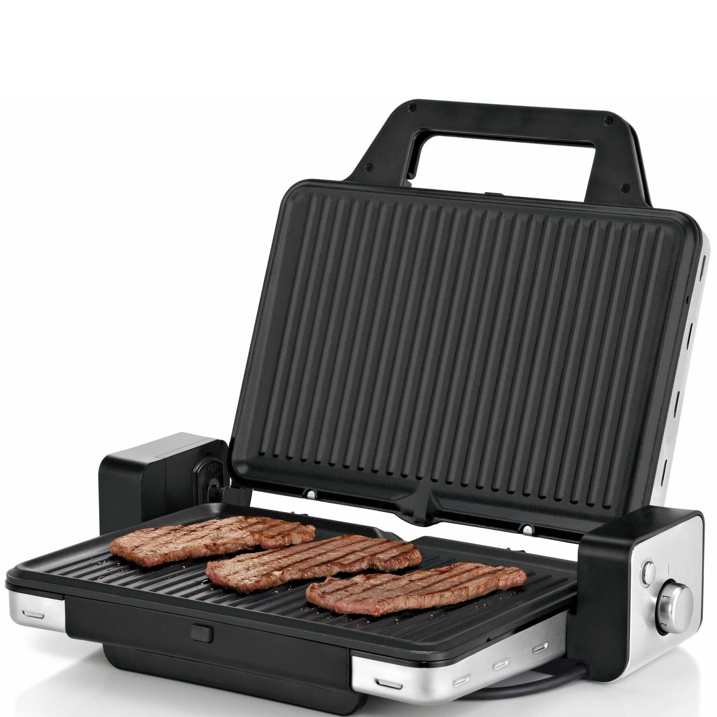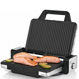 برای استیکهای نازک تا متوسط کاملاً کافی است و بهسرعت به دمای مطلوب میرسد. برای استیکهای خیلی ضخیم یا حجم پخت بالا، دستگاههایی با سطح بزرگتر یا توان بالاتر (مثل Profi Plus Plancha) مناسبترند.