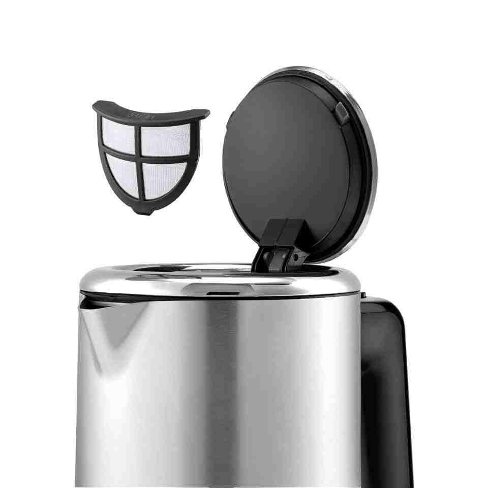 کتری برقی دبلیو ام اف مدل WMF Küchenminis kettle 0.8 L یک کتری ظریف برای جوشاندن با کارایی بالا را با زیبایی چشمگیر تضمین میکند و ترکیبی از روکش کرومی مات و درخشان را ارائه میدهد که حسی از سبک نوین را به هر آشپزخانهای اضافه میکند . باز شدن درب با یک دست با فشار یک دکمه و ظرفیت کامل 0.8 لیتر و طراحی بی سیم 360 درجه پایه و سیم جمع کن در زیر پایه و ویژگی های ایمنی حفاظت از خشک شدن و گرمای بیش از حد و قطع خودکار جوش و درب قفل هوشمند است .