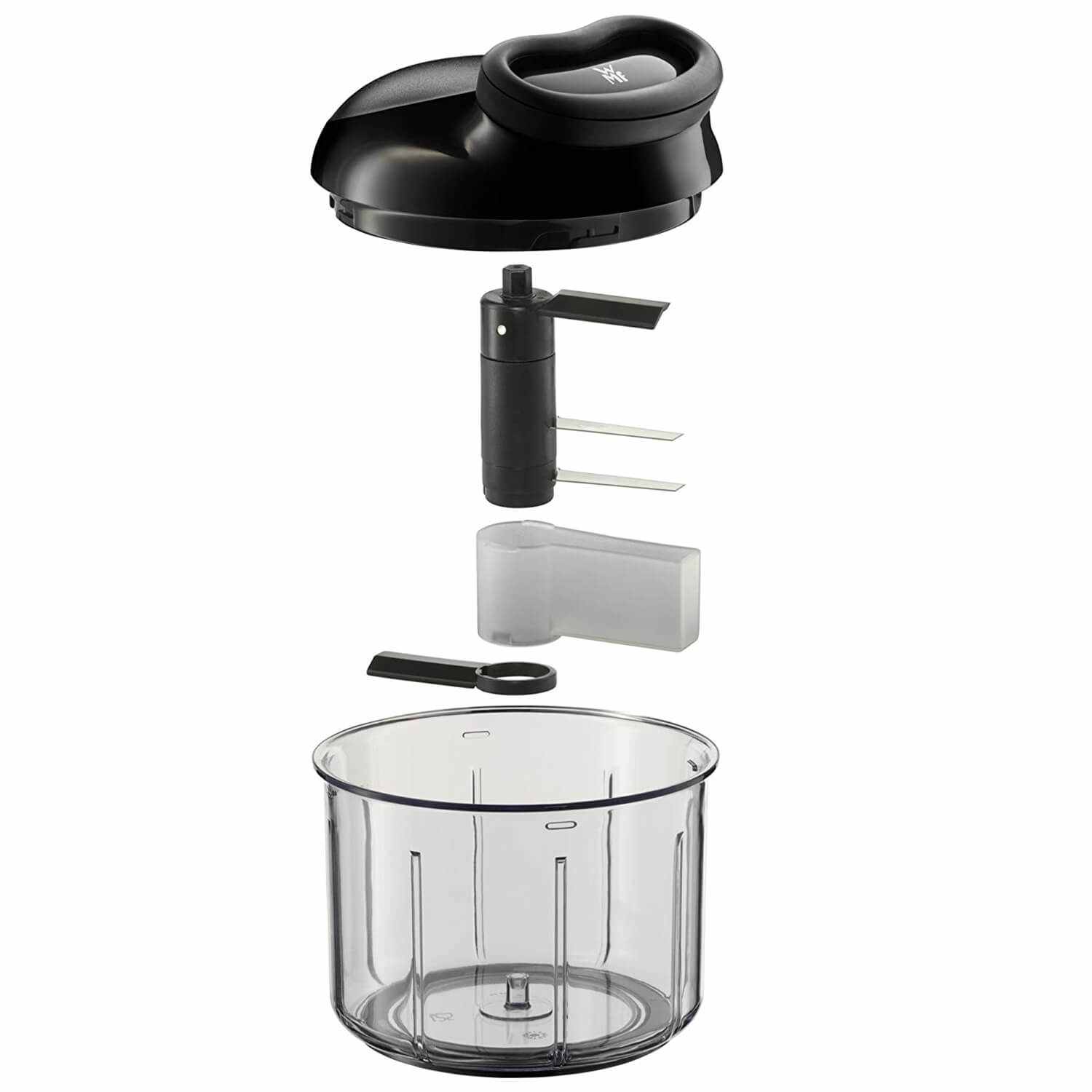 خرد کن دستی دبلیو ام اف مدل WMF Gourmet Multihacker دارای ظرف ضد لغزش ساخته شده از پلاستیک با کیفیت بالا ، محتوای 900 میلی لیتر می باشد . خرد کن با 2 تیغه تیز ساخته شده از فولاد کرومارگان ضد زنگ عمل میکند . محافظ تیغه و تراش جداگانه ساخته شده از پلاستیک است . برخلاف بسیاری از اقلام پلاستیکی ، قطعات پایدار ، بادوام و مراقبت از آن آسان است .