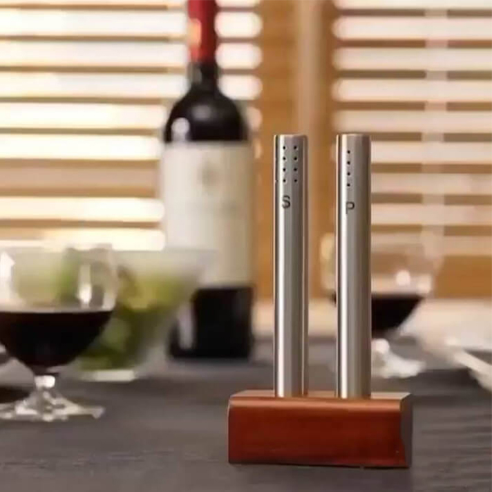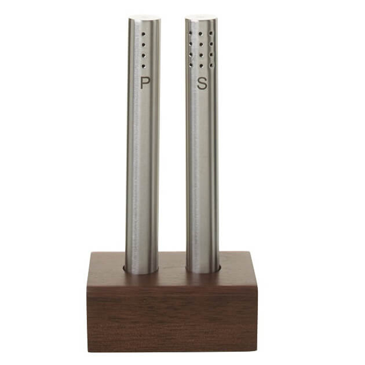 نمک پاش و فلفل پاش 2 پارچه دبلیو ام اف مدل WMF Salt pepper Wooden با طراحی باریک و مدرن خود باعث شگفتی می شود . پخش کننده های زیبا و بلند 15 سانتی متری از فولاد ضد زنگ مات Cromargan® ساخته شده اند و محکم در پایه چوبی با عرض 7.8 سانتی متر طراحی شده اند . ارتباط متقابل جذاب فولاد ضد زنگ سرد و چوب باعث می شود که دستگاه پخش کننده جذاب برای محیط های مدرن و کلاسیک مناسب باشد .