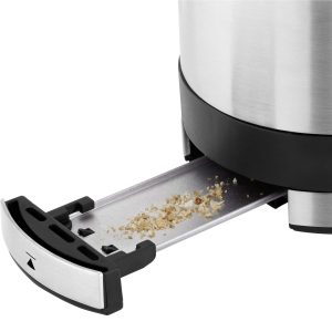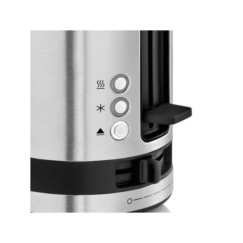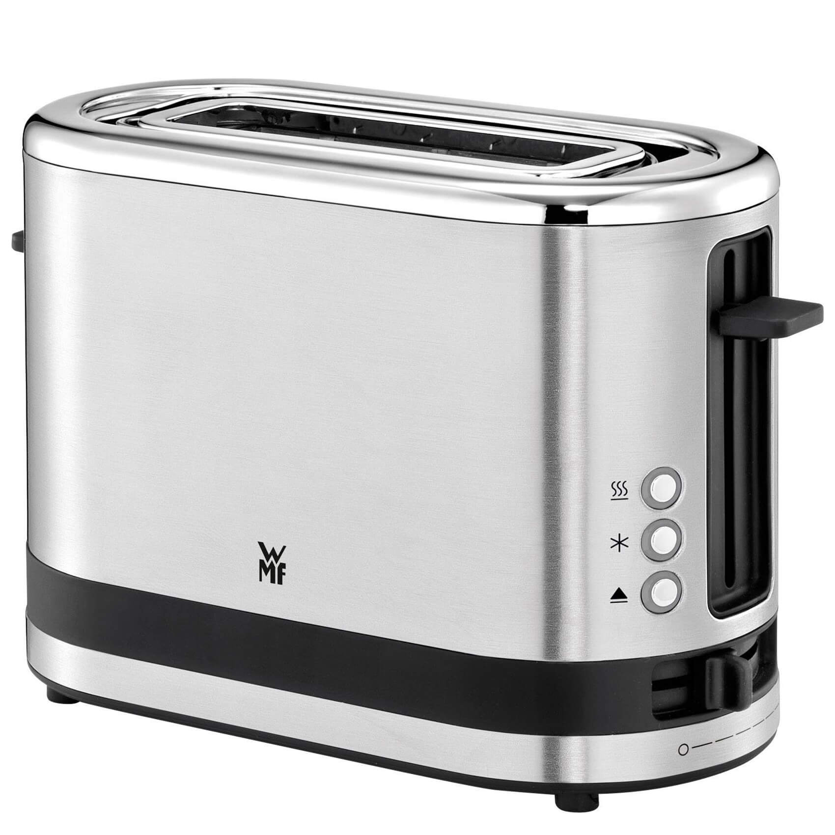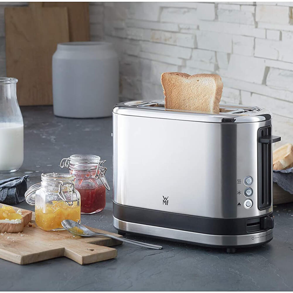 توستر دبلیو ام اف WMF KÜCHENminis toaster یک شگفتی فضای واقعی است و علیرغم اندازه جمع و جور خود می تواند حتی یک برش XXL را برشته کند . مرکز نان در هفت مرحله قابل تنظیم ، قهوه ای شدن یکنواخت را مطابق با ذائقه شما تضمین می کند . اتصال رول یکپارچه را می توان برای پخت کروسان نیز استفاده کرد . سینی خرده نان به سادگی با فشار دادن باز می شود و تمیز کردن را آسان می کند . WMF اولین نسل از WMF KITCHENminis را ارائه می کند . سری صبحانه WMF KITCHENminis ساخته شده از فولاد ضد زنگ کرومارگان و با نگاهی به صرفه جویی قابل توجه در فضا ، کاهش استفاده از منابع ارزشمند و صرفه جویی در مصرف انرژی است .