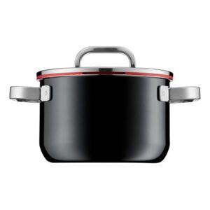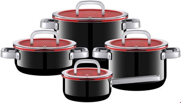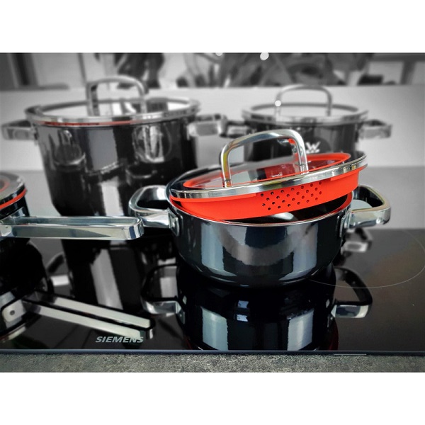 سرویس قابلمه 8پارچه دبلیو ام اف مدل WMF FUSIONTEC Functional Black از 7 قطعه ساخته شده از فولاد ضد زنگ با روکش سیلارگان ( نوعی روکش جدید که بسیار مقاوم است و از بین نمی رود این نوع روکش چسبندگی بسیار کمتری نسبت به استیل دارد ولی نچسب نیست و ضد سرطان و فاقد مواد شیمیایی است ) که درب آن از شیشه ای و دور درب دارای سیلیکون با 3 مدل خروجی بخار و آب است همچنین دسته های قابلمه در طول پخت و پز داغ نمی شوند ، غذای خود را هنگام پخت به دلیل درب شیشه ای به راحتی کنترل کنید . کف سه لایه جهانی ثبت شده TransTherm به لطف توزیع و حفظ بهینه گرما ، هنگام پخت و پز در مصرف انرژی صرفه جویی می کند . قابلمه های Fusiontec دارای دسته های توخالی هستند که انتقال حرارت را از قابلمه به دسته کاهش می دهند . سطح فوق العاده صاف و فوق العاده سخت در برابر خراش و خط ، بنابراین به راحتی تمیز می شود و همیشه ظاهر آن جدید است . لطفا توجه داشته باشید این محصول نچسب نیست و باید به شرایط استفاده از آن دقت کنید.