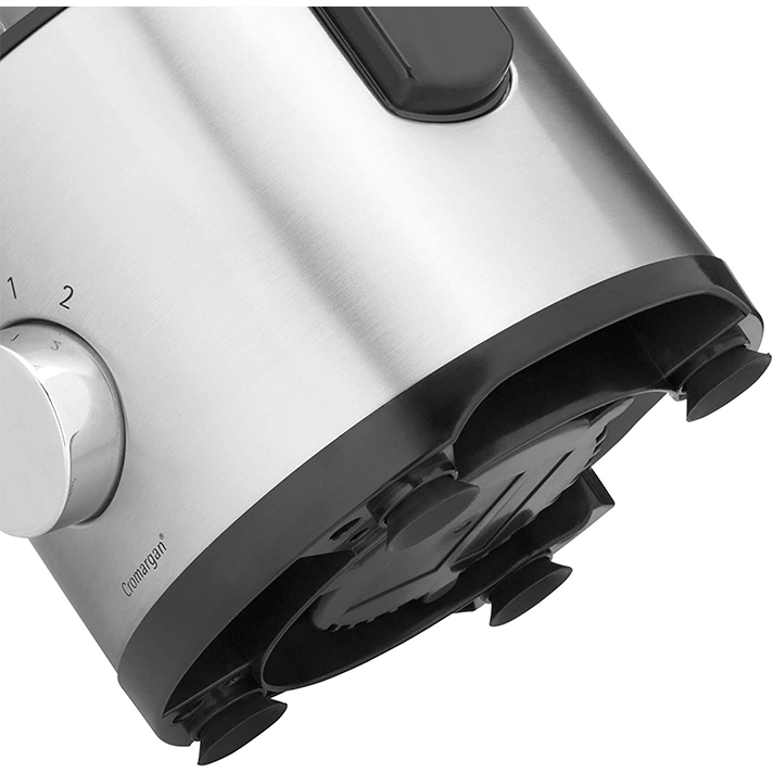 غذاساز Kult X وی ام اف با عملکردی بی نقص برای استفاده روزانه طراحی شده است و تمام ویژگی های یک محصول کامل را دارد. این غذاساز با انصالات متعددی که دارد تمامی نیازهای آشپزی تان را برآورده خواهد کرد. تیغه های استیل و قدرتمند این محصول طیف گسترده ای از محصولات غذایی را برای شما خرد خواهند کرد. شما می توانید از دیسک های مخصوص غذاساز برای رنده، خلال و ورقه ورقه کردن میوه و سبزیجات استفاده کنید. این دستگاه همچنین مجهز به سری خمیرزن و سری مخصوص برای زدن خامه و فرم دهی سفیده تخم مرغ می باشد. گنجایش ظرف خردکن 2 لیتر است و برای سهولت بیشتر وروردی نسبتا بزرگی دارد. روی بدنه دستگاه یک ولوم چرخشی قرار دارد که علاوه بر عملکرد پالس، شما می توانید با استفاده از آن سرعت دستگاه را برروی دو سطح تنظیم کنید. این غذاساز با اندازه جمع و جوری که دارد فضای کمی را در آشپزخانه می گیرد. مجموعه Kult وی ام اف با طراحی ظریف و زیبایی که دارد شما را شیفته خود خواهد کرد.