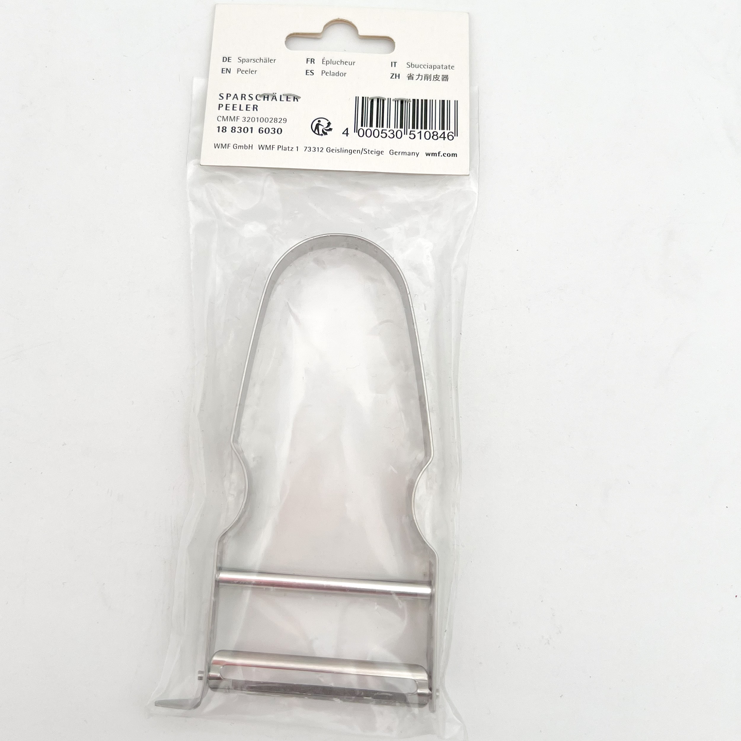 پوست کن WMF Gourmet نام خود را همیشه بالا نگه می دارد . هنگام پوست کندن سبزیجات در زمان و تلاش زیادی صرفه جویی می کند . تیغه تیز آن بدون زحمت زیر پوست سیب ، انبه ، خیار و سیب زمینی می رود و لایه های نازکی را جدا می کند تا حتی با مارچوبه های گرانبها چیزی هدر نرود . گجت آشپزخانه مفید برای افرادی است که چپ یا راست دست هستند ، می توان آن را به راحتی در ماشین ظرفشویی تمیز کرد و سپس با استفاده از حلقه آن را به راحتی روی قلاب آویزان کرد تا در فضا صرفه جویی شود . قسمت گوشه بالایی به گونه ایی طراحی شده که بتوان قسمت ناهموار سیب زمینی را تمیز کنید .