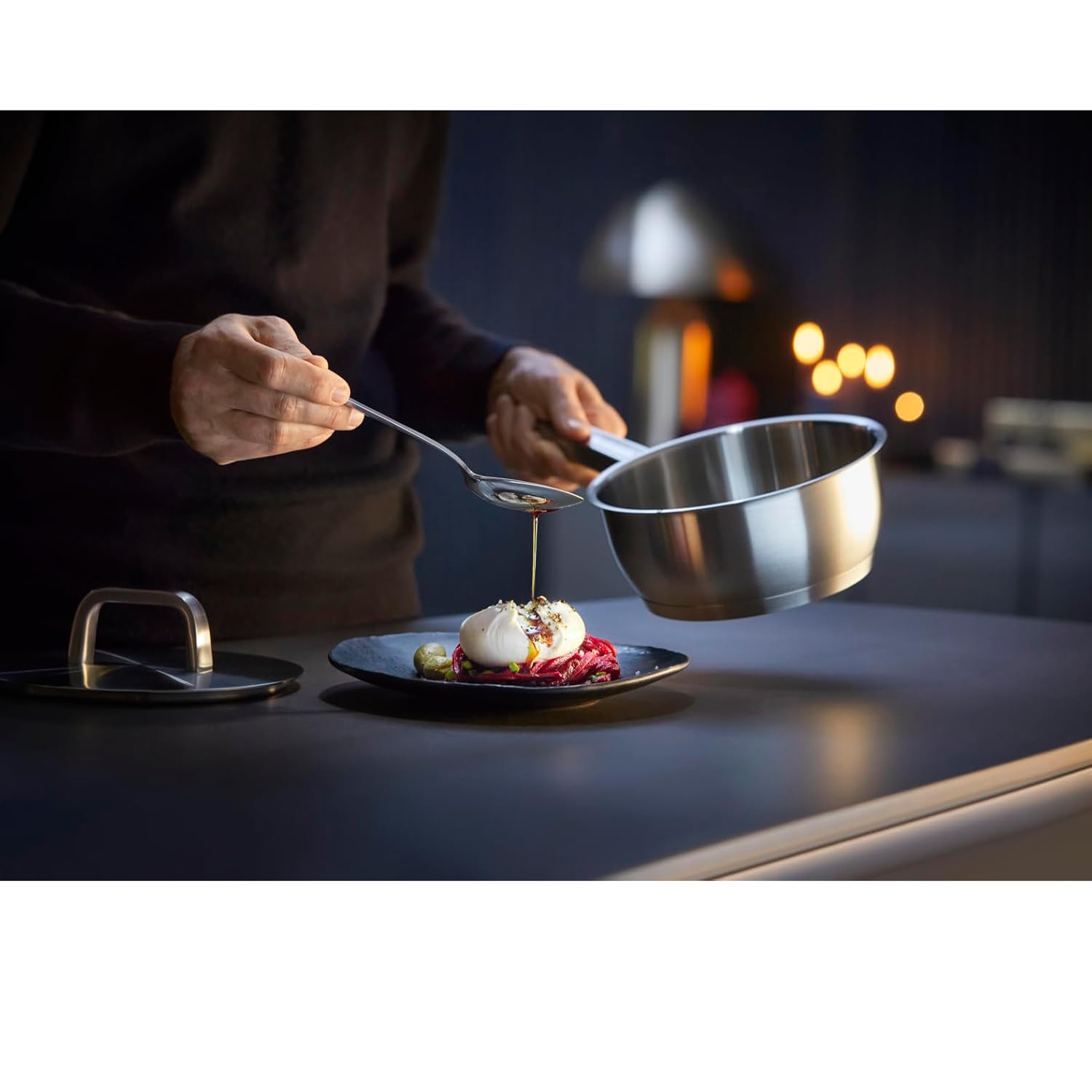 شیرجوش 18 سانت دبلیو ام اف مدل WMF Iconic Saucepan از ظروف آشپزی استیل ضد زنگ نمادین WMF با ترکیب طراحی شیک با کیفیت و دوام استثنایی و افزودنی ضروری برای هر آشپزخانه ای است . این شیرجوش سخاوتمندانه ، با دستگیرههای کم حرارت برای حداکثر سهولت استفاده و برای همه نیازهای آشپزی شما ایدهآل است . از خورشهای خوشمزه گرفته تا سوپ ، آب ، پاستا و پوره . علامتهای اندازهگیری تعبیه شده در داخل دیگ فولاد ضد زنگ ، اندازهگیری دقیق را بدون دردسر انجام میدهند ، در حالی که یک لبه پهن ریخته گری شده ، ریختن آسانتر و بدون چکه را تضمین میکند . ترکیب عملکرد با ایمنی و درب فولاد ضد زنگ مقاوم دارای یک دریچه داخلی برای انتشار کنترل شده بخار است . پایه جهانی TransTherm® بسته را تکمیل می کند تا در مصرف انرژی در حین پخت و پز صرفه جویی شود . فولاد ضد زنگ 18/10 با روکش مات برای دوام استثنایی و زیبایی شناسی عالی که در طول زمان مقاومت بالایی دارد .