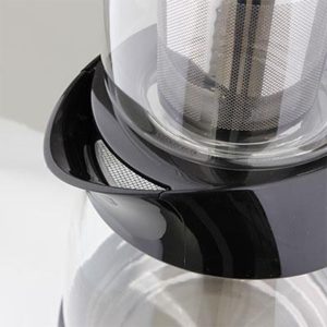 قوری این دستگاه نیز با جنس شیشه ای دارای ظرفیت 1 لیتر می باشد. این قوری پیرکس دارای یک فیلتر از جنس استیل ضد زنگ بوده که به راحتی قابل جداسازی و شستشو می باشد.