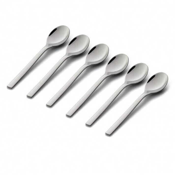 قاشق قهوه خوری 6 پارچه دبلیو ام اف مدل WMF Coffee spoon set Nuova قاشق بلند که وقتی قهوه و یا لته شما را به هم می زند تأثیر زیادی می گذارد و بنابراین طعم بی نظیر آن را به قهوه و لته می بخشد . قاشق قهوه 15 سانت Nuova به عنوان مکمل مدلهای مختلف کارد و چنگال است و با همه مدل ها همخوانی دارد . به دلیل جنس فولاد کرومارگان می توان آن را در ماشین ظرف شویی قرار دهید .