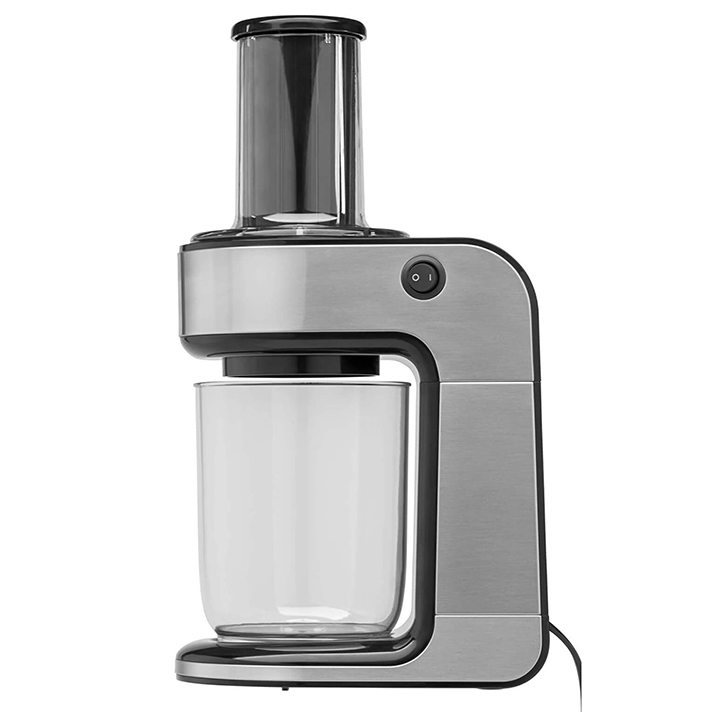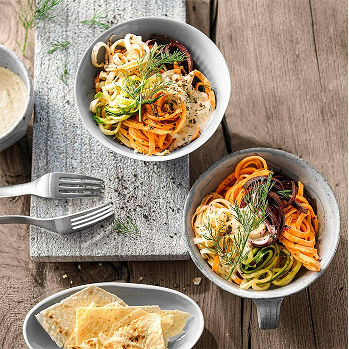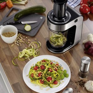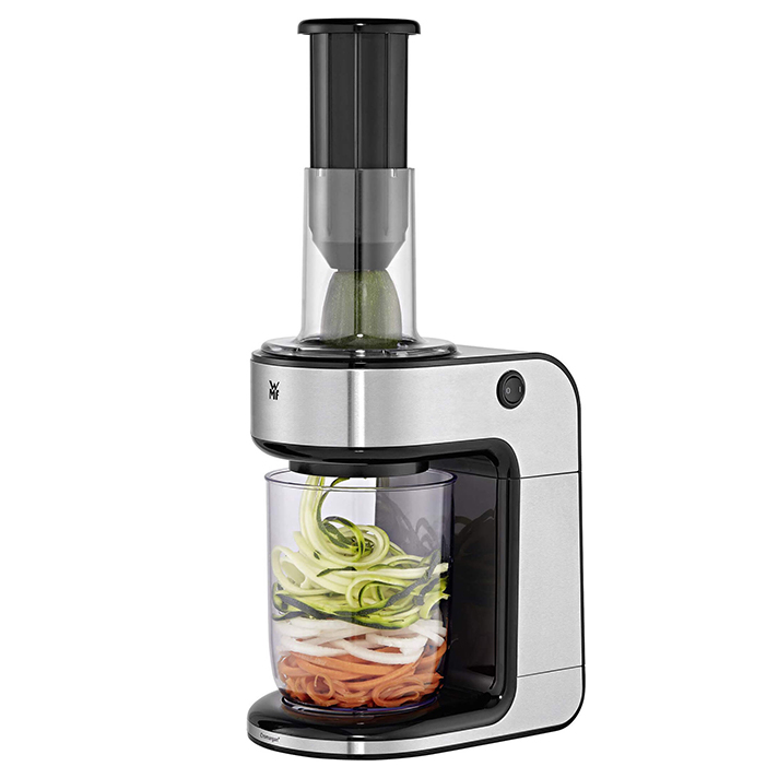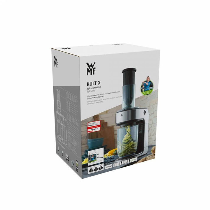 یک محصول فوق الاده را تجربه کنید رشته ساز و سالاد ساز در یک محصول بسیار زیبا خود نمایی می کند . بسیار ساده ، سریع و سرشار از ویتامین و خوشمزه و رژیم غذایی کم کالری و متنوع با WMF Kult Pro Spiraliser سالاد ساز یک درمان خالص برای بدن است . جنس بدنه و تیغه ها از فولاد کرومارگان می باشد که طول عمر و زیبایی دستگاه را تا سال ها تضمین می کند . یک ابزار عالی برای تهیه ماکارونی سبزیجات تازه ، رنده و برش میوه و سبزیجات است . مکانیزم اتوماتیک که با فشار شروع به کار می کند و قطع می کند . تمیز کردن آن بسیار آسان است و تمام قطعات قابل جدا شدن و قابل شستشو در ماشین ظرفشویی هستند .